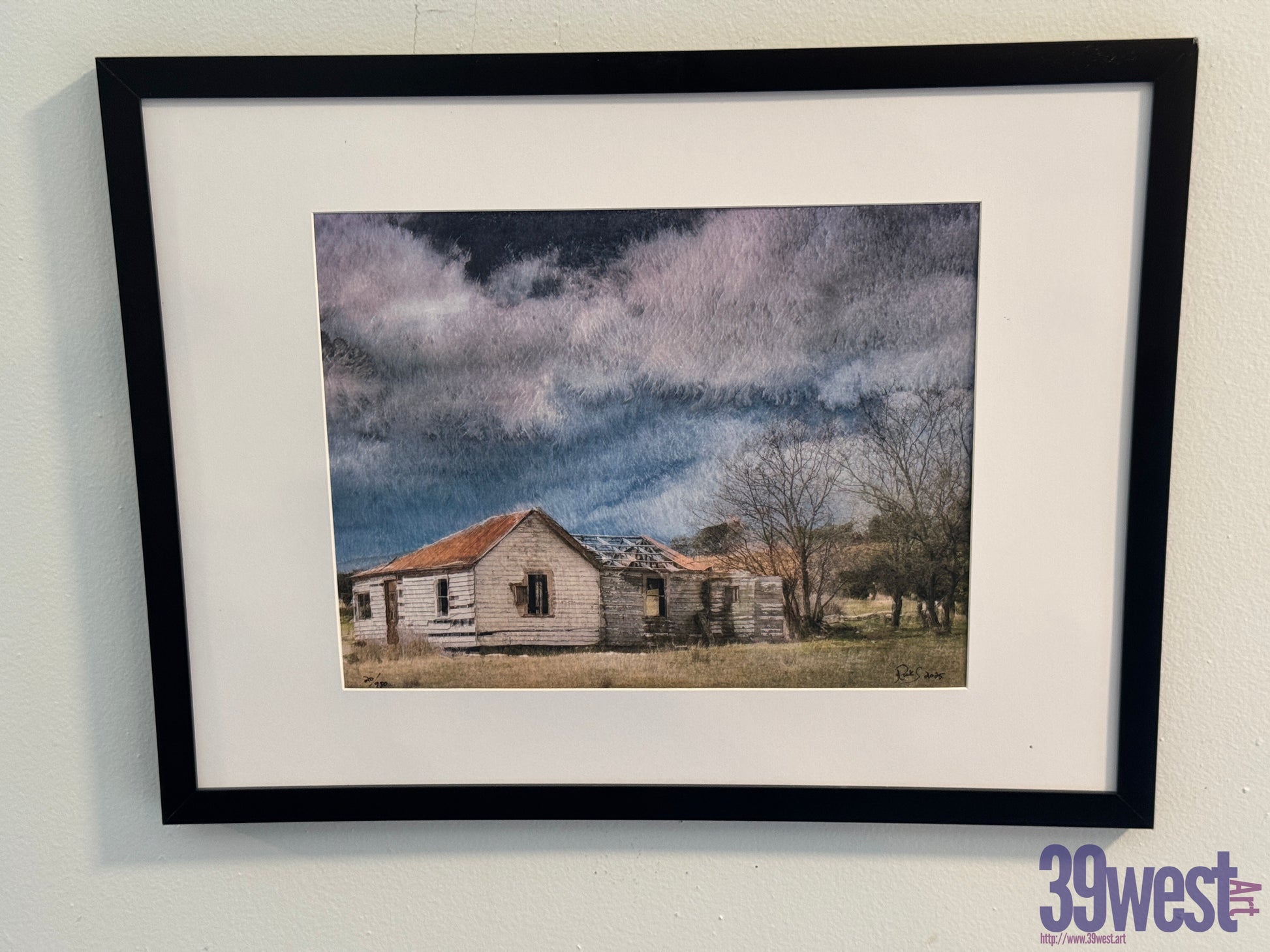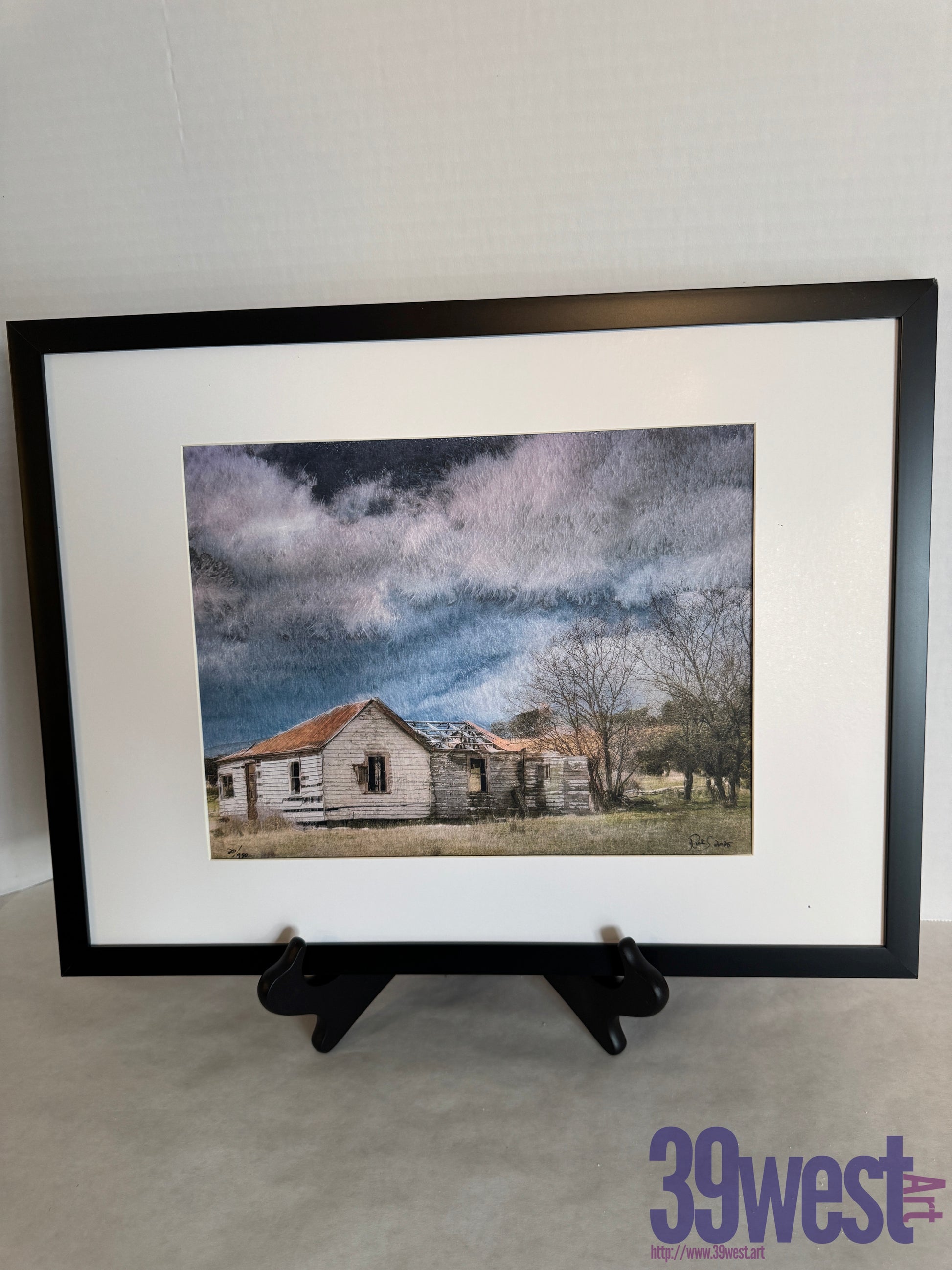 This hand signed, numbered print is delivered in a 16 inches by 12 inch frame and matted to size. It includes a certificate of authenticity.