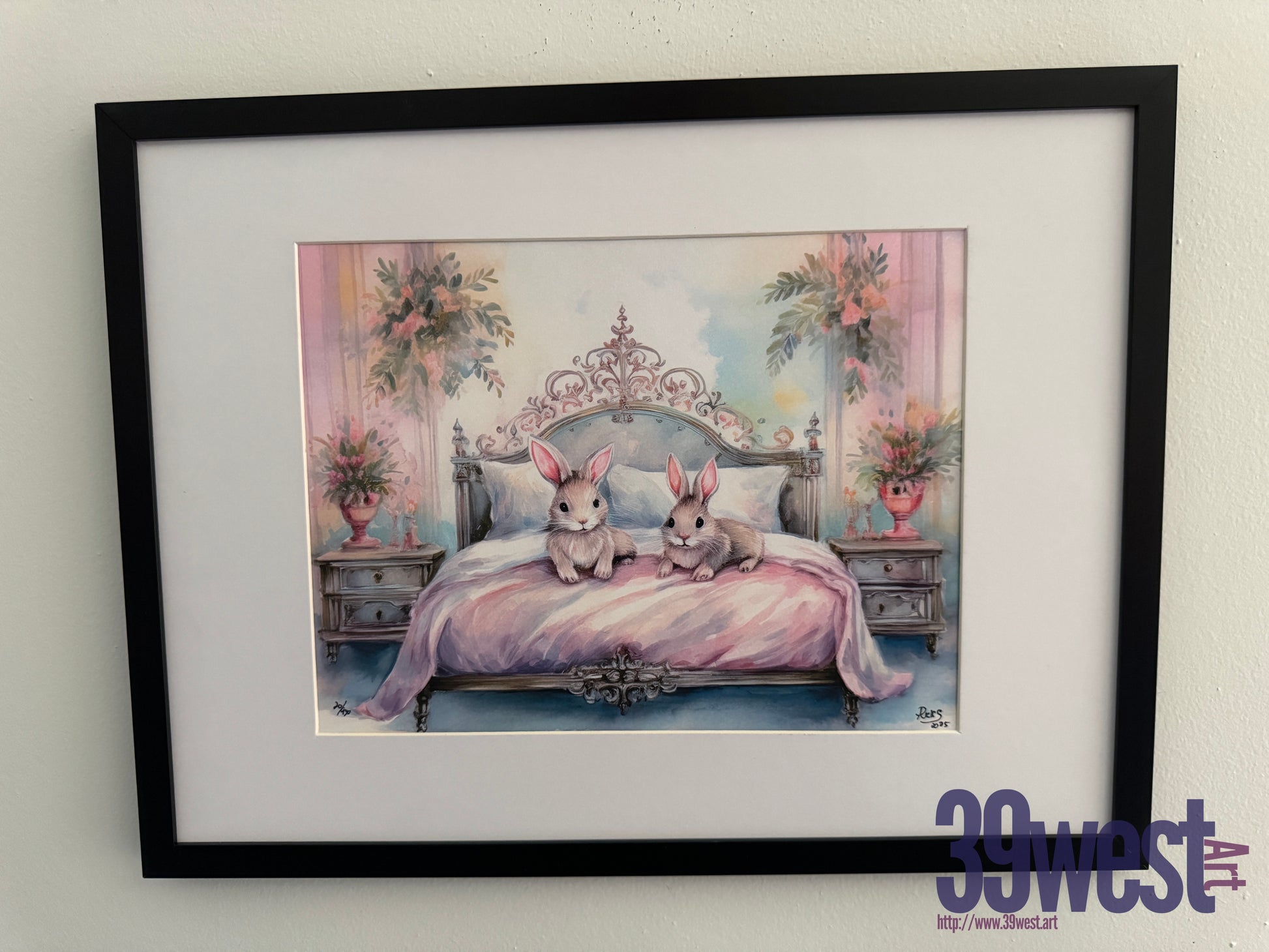 Artist Rick Snyder captures their royal highnesses... Bunnies on the Bed.