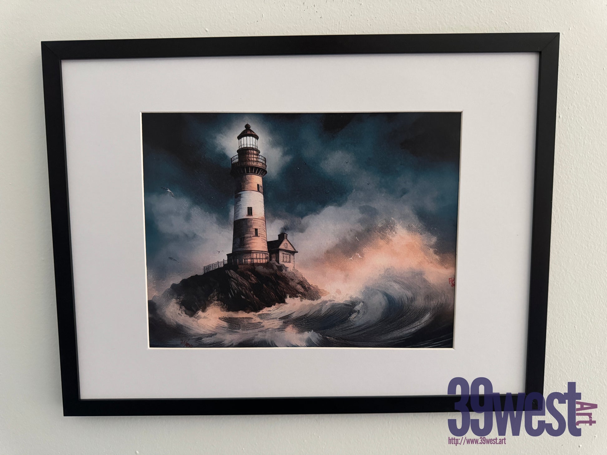 This hand signed, numbered print is delivered in a 16 inches by 12 inch frame and matted to size. It includes a certificate of authenticity.