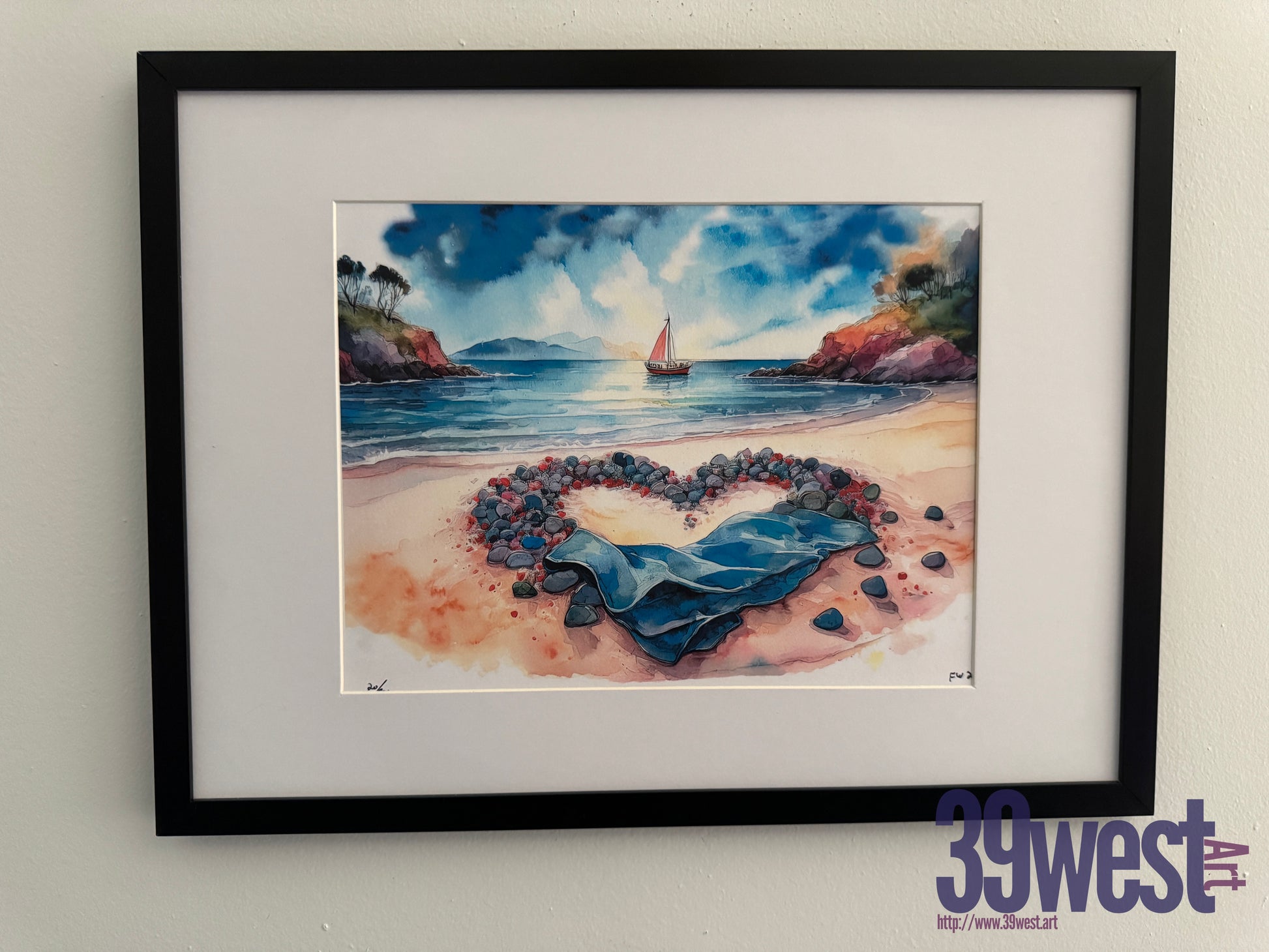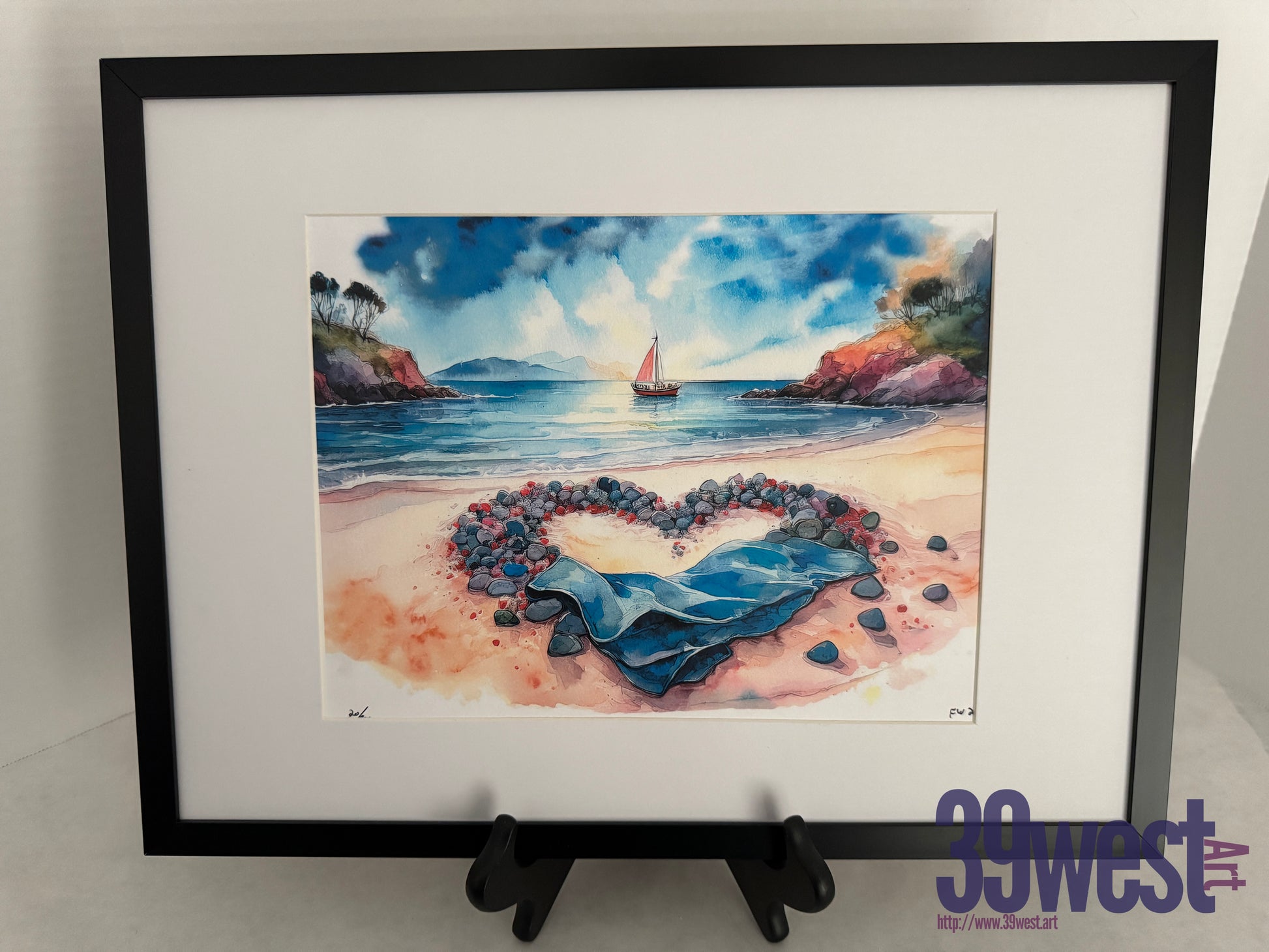 This hand signed, numbered print is delivered in a 16 inches by 12 inch frame and matted to size. It includes a certificate of authenticity.